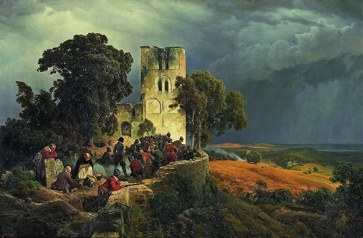 Die Belagerung von Carl Friedrich Lessing 1848 Öl auf Leinwand 116,5×176,6cm Museum Kunstpalast Düsseldorf, Wikipedia: Carl Friedrich Lessing