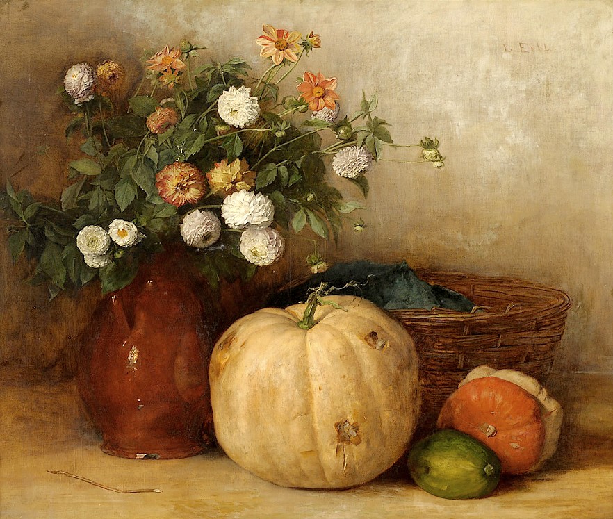Stillleben mit Blumen und Kürbis von Ludwig Eibl Öl auf Leinwand