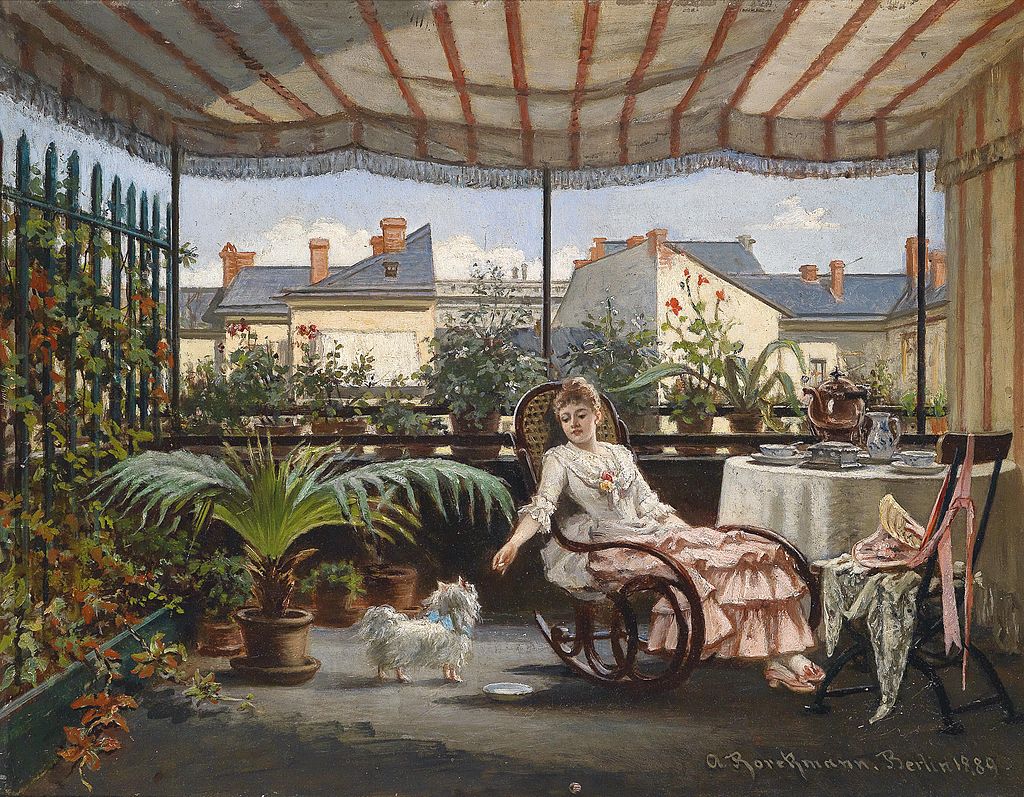 Teestunde auf der Veranda von August Borckmann 1889 Öl auf Leinwand