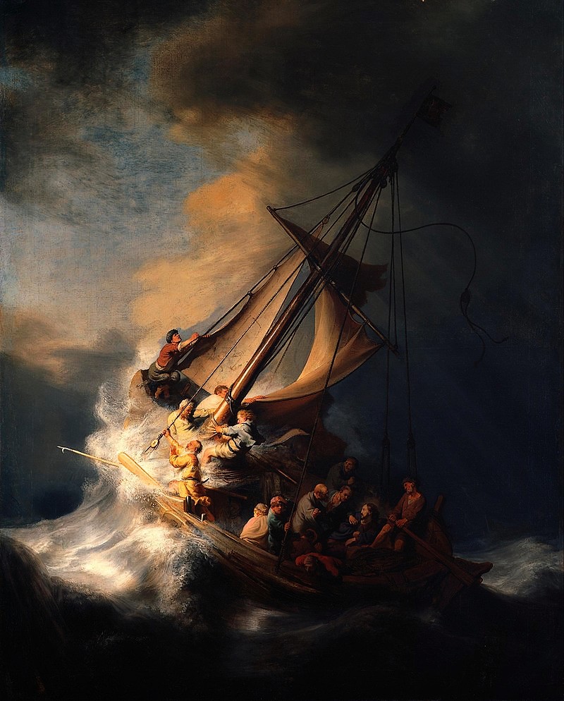 Christus im Sturm auf dem See Genezareth von Rembrandt van Rijn 17.Jh. Öl auf Holz 160×128cm Verschollen Wikipedia: Rembrandt van Rijn