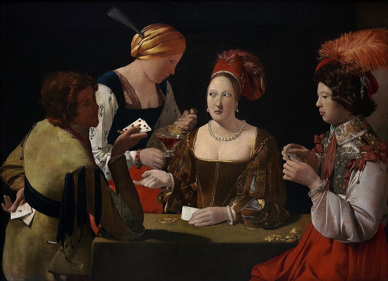 Der Falschspieler mit dem Karo-Ass von Georges de la Tour um 1620 Öl auf Leinwand 106×146cm Louvre Paris, Wikipedia: Georges de la Tour