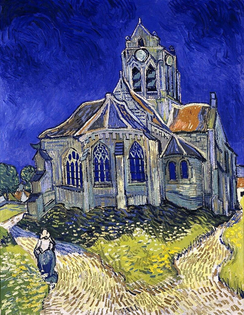 Die Kirche von Auvers von Vincent van Gogh 1890 Öl auf Leinwand 81,5×114,5cm Musée d’Orsay Paris, Wikipedia: Vincent van Gogh