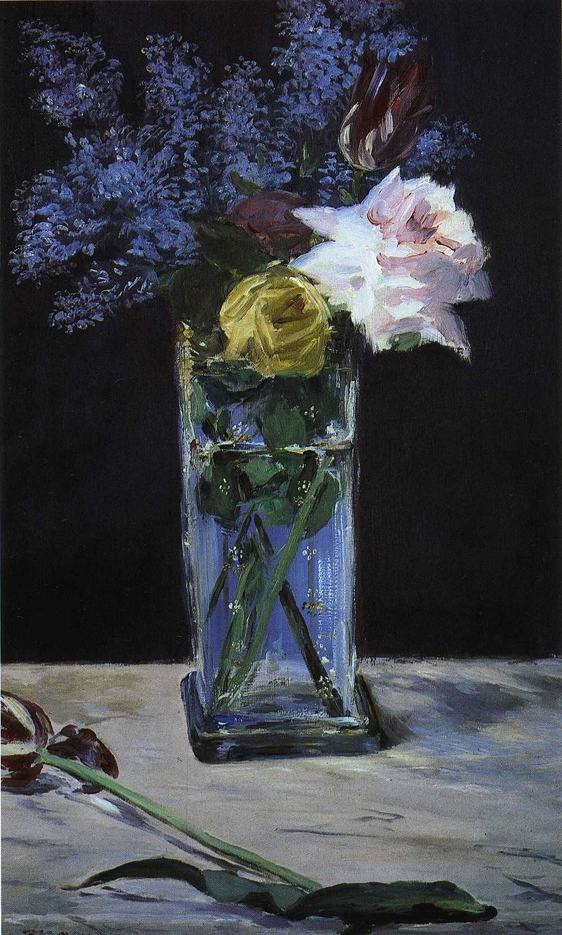 Kristallvase mit Rosen Tulpen und Flieder von Édouard Manet 1883 Privatsammlung