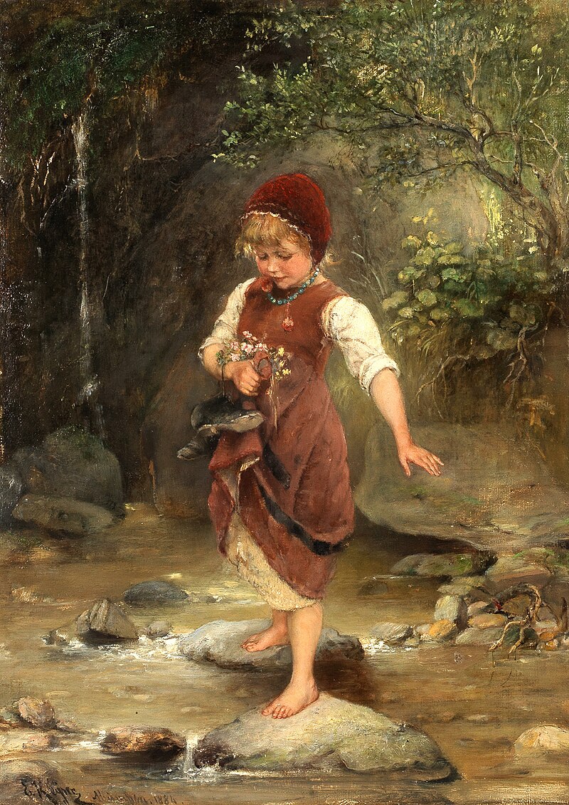 Über die Trittsteine von Emil Keyser 1884 Öl auf Leinwand