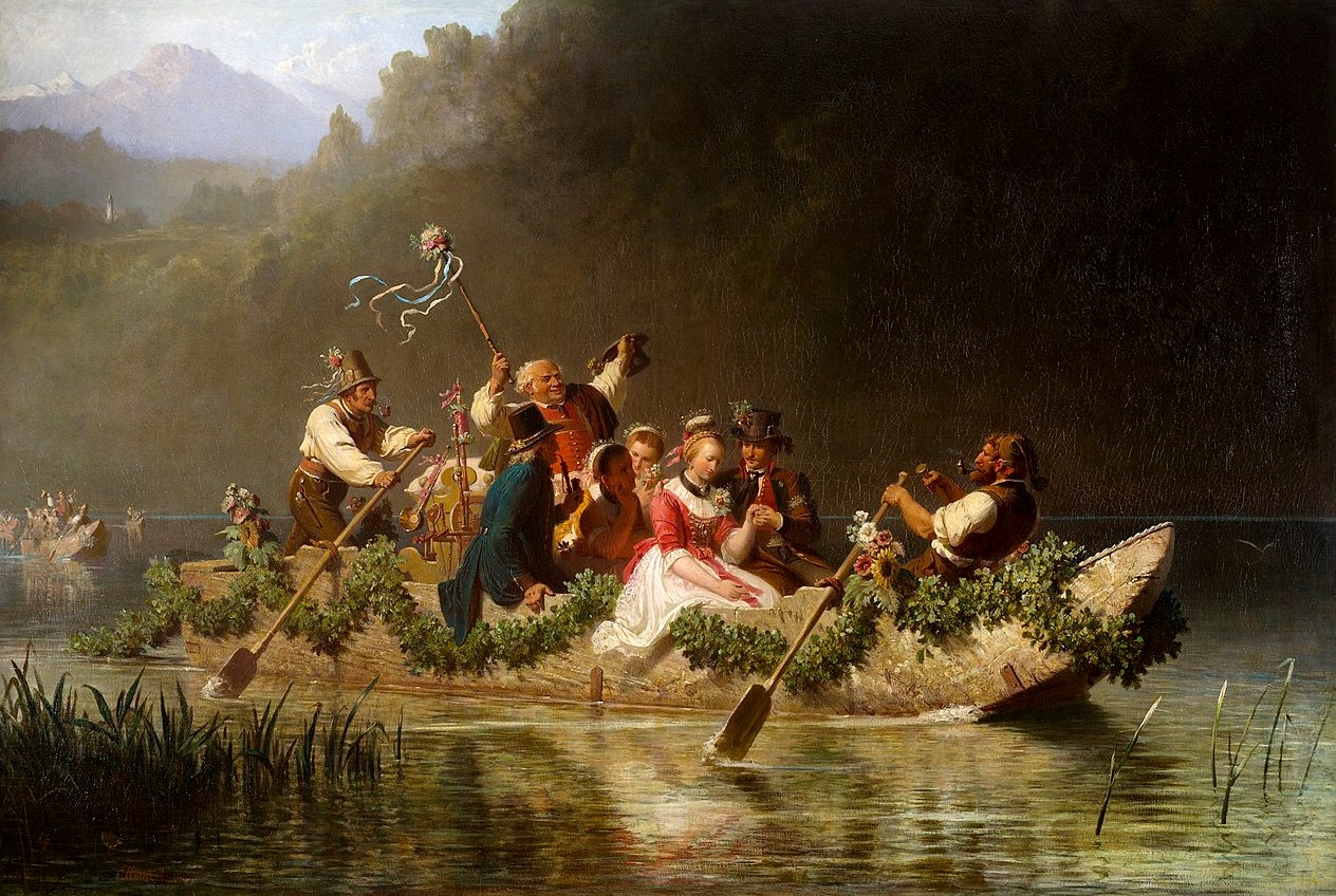Hochzeitszug auf einem bayerischen Gebirgssee von Julius Köckert 1867 Öl auf Leinwand Wikipedia: Julius Köckert