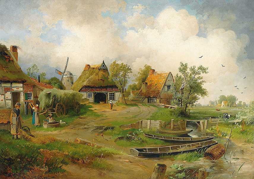Niederrheinische Dorflandschaft von Paul Köster Öl auf Leinwand