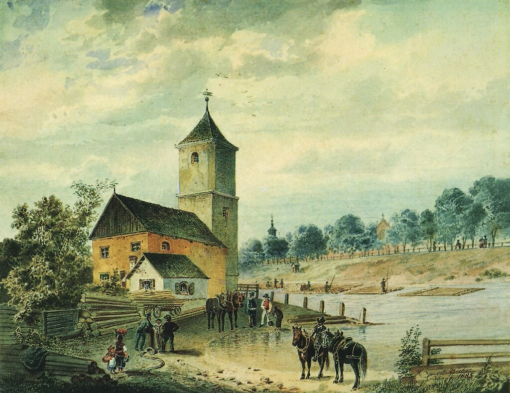 Obere Lände am Westermühlbach mit dem Brunnhaus von Max Kuhn 1886 Öl auf Leinwand