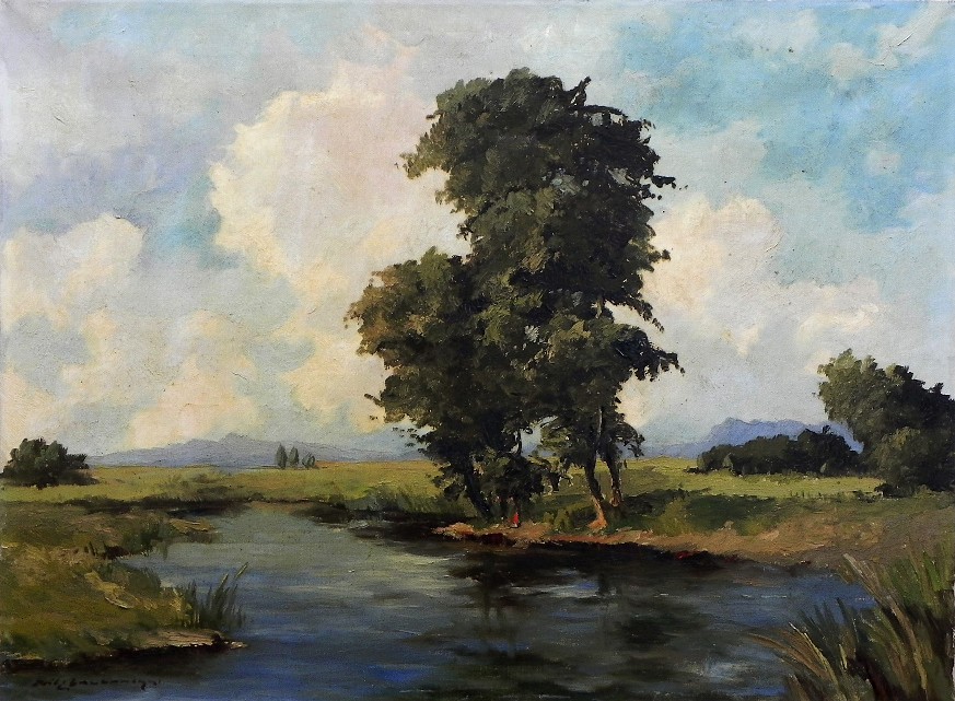 Bayerische Landschaft von Fritz Laubenthal 1940 Öl auf Leinwand