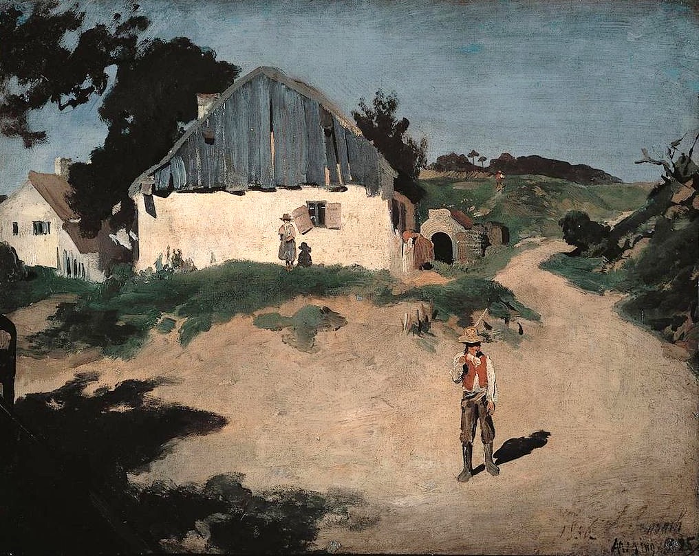 Dorfstraße in Aresing von Franz von Lenbach 1856 Öl auf Leinwand Neue Pinakothek München,