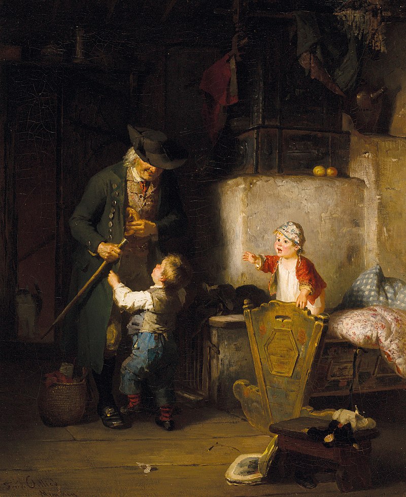 Der Besuch des Großvaters von Friedrich Ortlieb Öl auf Leinwand