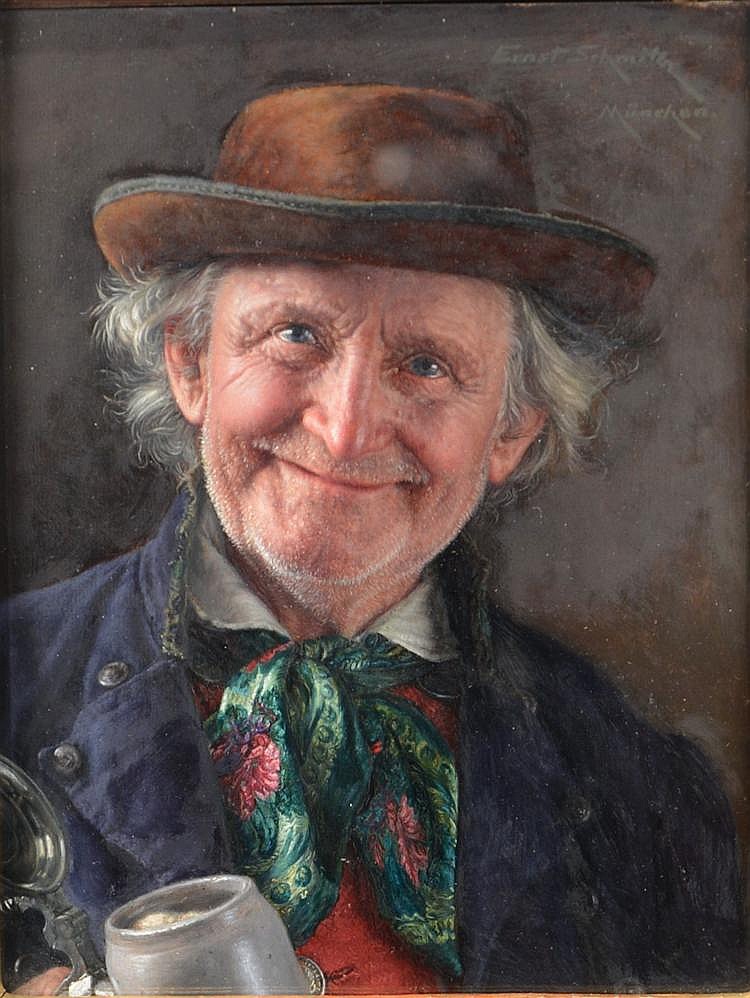Fröhlicher Biertrinker von Ernst Schmitz 1906 Öl auf Leinwand