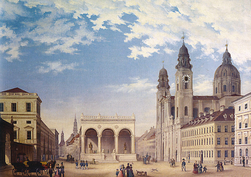Feldherrnhalle mit Theatinerkirche München vor 1888 von Gustav Seeberger Öl auf Leinwand 1880 Wikipedia: Gustav Seeberger