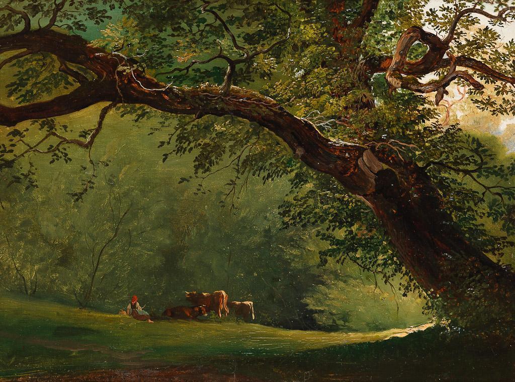Junge Kuhhirtin mit Vieh von Ludwig Gustav Voltz 1865 Öl auf Leinwand