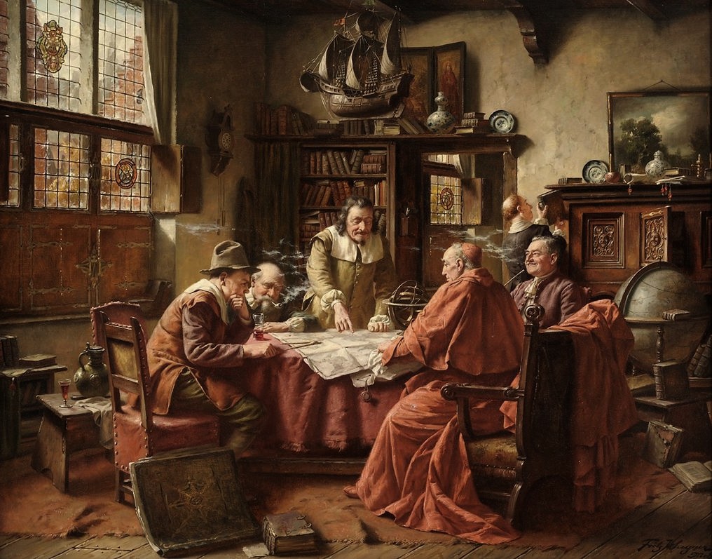Herrenrunde mit Landkarte auch Die Gelehrtenrunde von Fritz Wagner Öl auf Leinwand