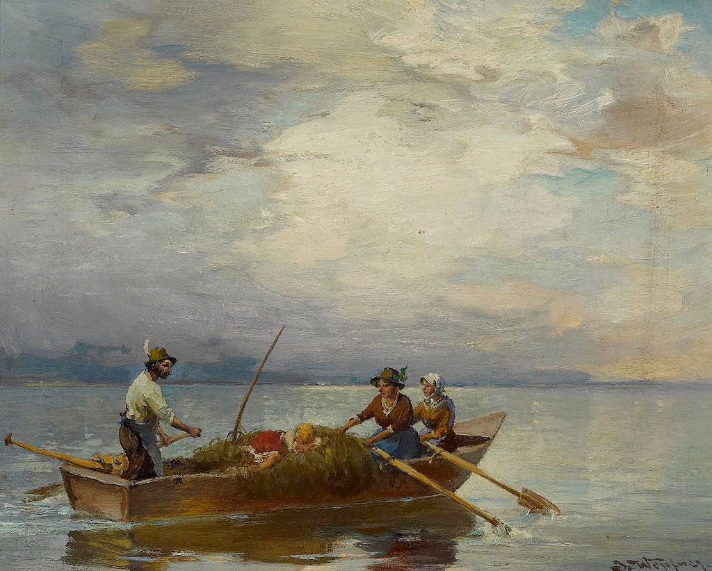 Überfahrt auf dem Chiemsee von Joseph Wopfner Öl auf Leinwand