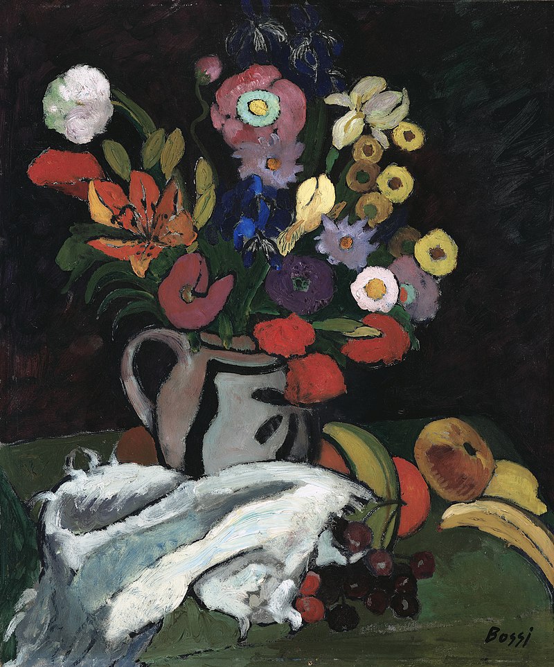 Stilleben von Erma Bossi 1910 Öl auf Leinwand 63,5x52cm Städtische Galerie im Lenbachhaus und Kunstbau München, Wikipedia: Erma Bossi
