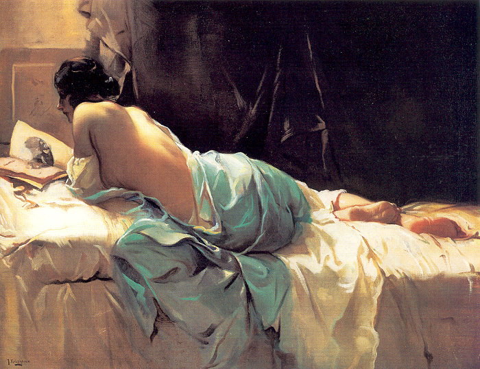Weiblicher Akt, lesend von Julius Rolshoven um 1832 Öl auf Leinwand