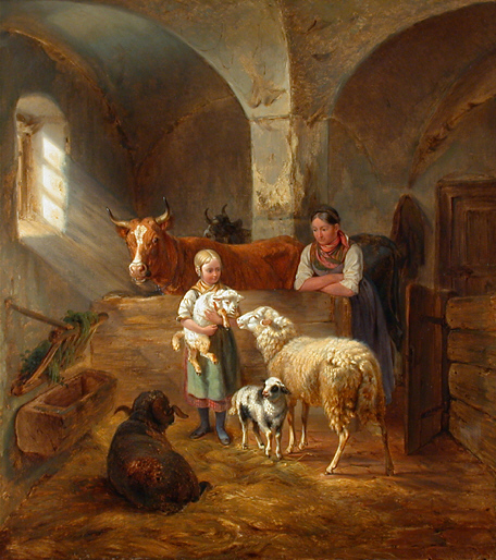 Im Stall von Benno Adam 1854 Öl auf Leinwand