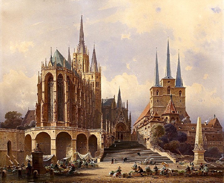 Der Erfurter Domplatz mit Severikirche von Friedrich Eibner Öl auf Leinwand